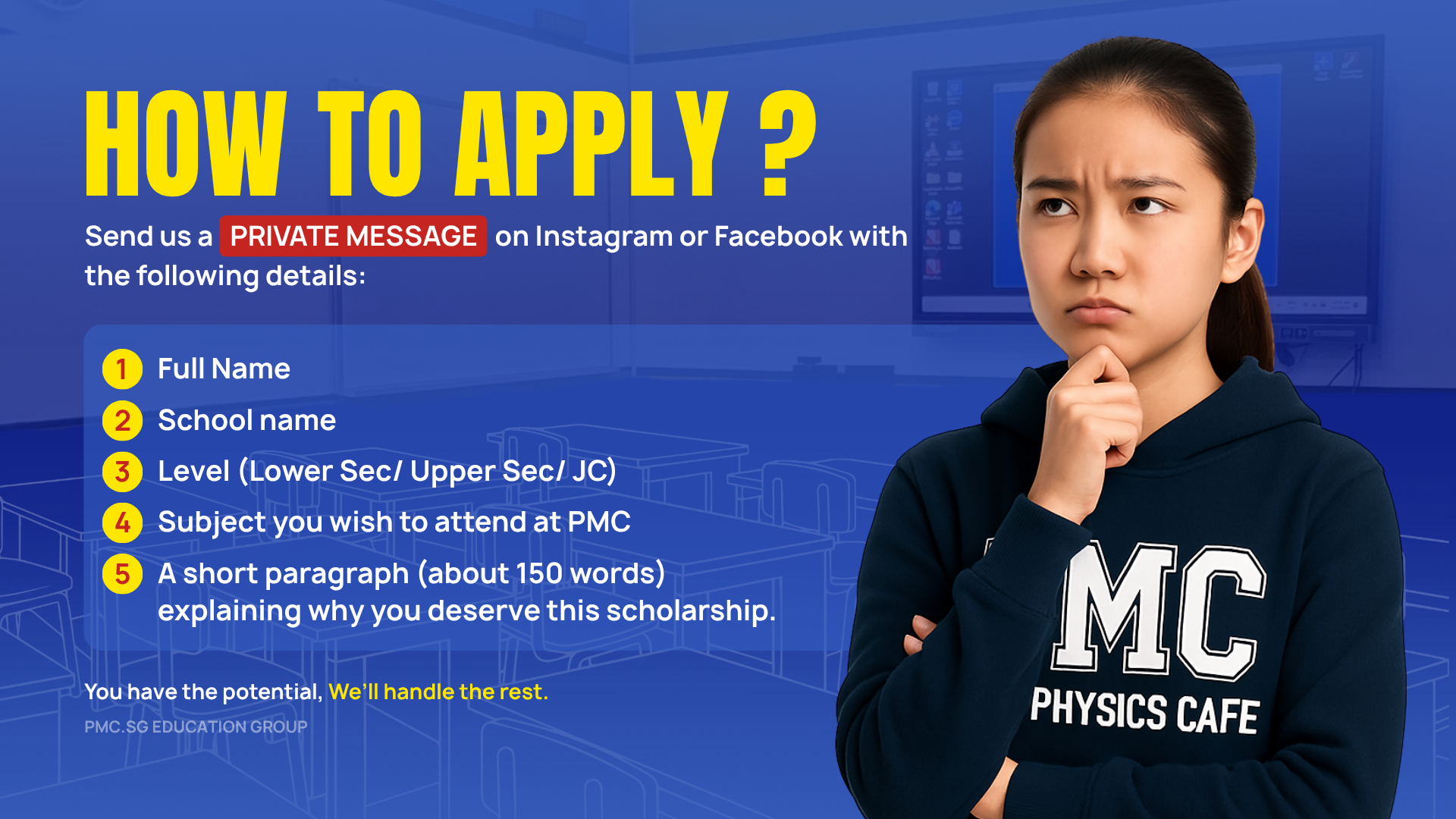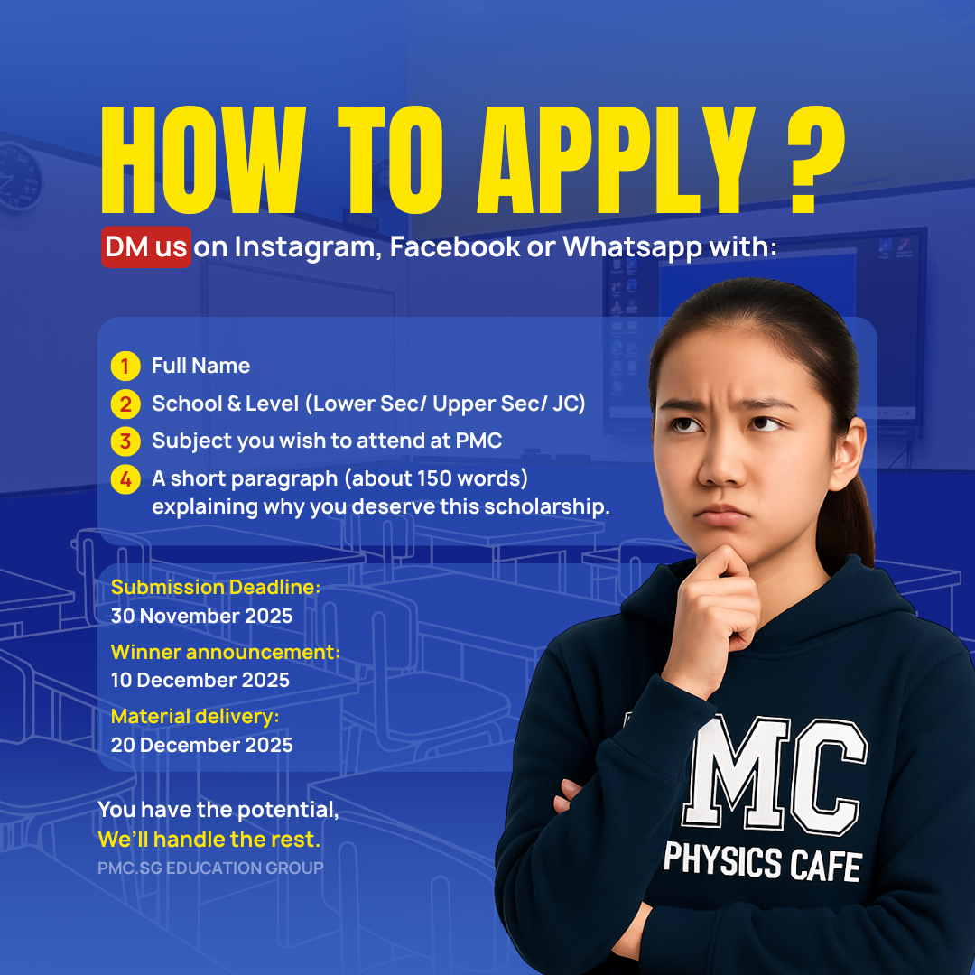 If you are passionate, motivated, and eager to excel, this is your chance to join PMC, Singapore’s leading Physics, Maths and Chemistry Education Centre.