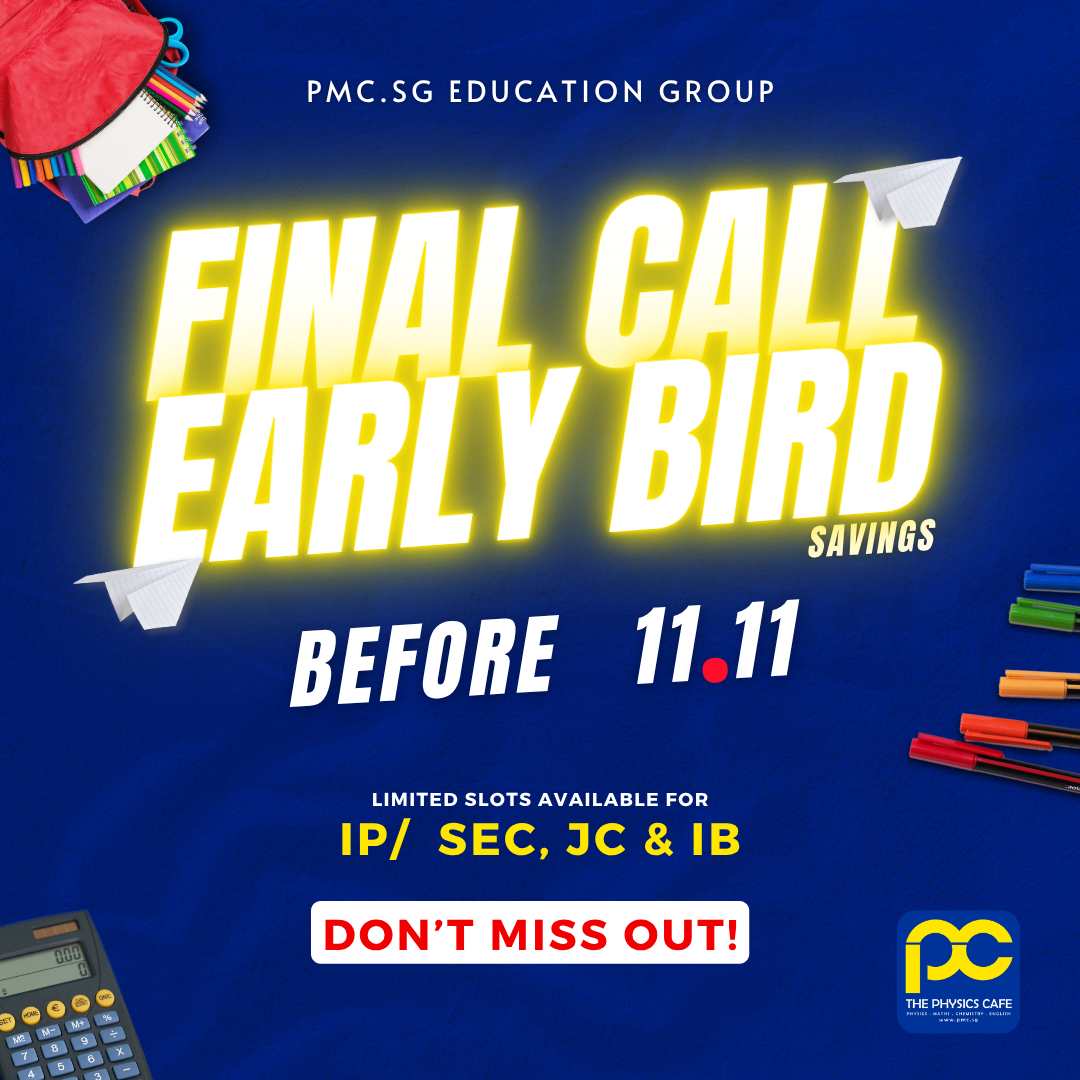 𝗖𝗼𝗺𝗽𝗹𝗶𝗺𝗲𝗻𝘁𝗮𝗿𝘆 𝗖𝗼𝗻𝘀𝘂𝗹𝘁𝗮𝘁𝗶𝗼𝗻𝘀 𝘄𝗶𝘁𝗵 𝗘𝘅𝗽𝗲𝗿𝘁𝘀 𝗳𝗼𝗿 𝗦𝗲𝗰 𝗮𝗻𝗱 𝗝𝗖/𝗜𝗕 𝗦𝘁𝘂𝗱𝗲𝗻𝘁𝘀! Feeling uncertain about which direction to take in your child’s education?😕 It’s completely natural to feel overwhelmed with all the options. You want the best for your child, and sometimes, you just need expert guidance to make sure you’re on the right track. 𝗧𝗵𝗮𝘁’𝘀 𝘄𝗵𝘆 𝘄𝗲 𝗼𝗳𝗳𝗲𝗿 𝗰𝗼𝗺𝗽𝗹𝗶𝗺𝗲𝗻𝘁𝗮𝗿𝘆 𝗰𝗼𝗻𝘀𝘂𝗹𝘁𝗮𝘁𝗶𝗼𝗻𝘀 𝘃𝗶𝗮 𝗪𝗵𝗮𝘁𝘀𝗔𝗽𝗽. Our directors are here to provide personalized, one-on-one advice for your child’s subject-specific needs. No pressure—just genuine support to help you make informed decisions.✨ Our directors: - Mr. Sim (Physics) - Mr. Alex (Maths) - Mr. Jacob (Chemistry) 𝗪𝗲 𝘂𝗻𝗱𝗲𝗿𝘀𝘁𝗮𝗻𝗱 𝘁𝗵𝗲 𝘄𝗲𝗶𝗴𝗵𝘁 𝗼𝗳 𝘆𝗼𝘂𝗿 𝗱𝗲𝗰𝗶𝘀𝗶𝗼𝗻𝘀, 𝗮𝗻𝗱 𝘄𝗲 𝘄𝗮𝗻𝘁 𝘁𝗼 𝗺𝗮𝗸𝗲 𝗶𝘁 𝗲𝗮𝘀𝗶𝗲𝗿 𝗳𝗼𝗿 𝘆𝗼𝘂. Whether you’re aiming to improve grades or need help navigating your child’s academic path, we’re here to offer clarity and the right strategy for success. Reach out via WhatsApp today for a free consultation and take the first step toward your child’s brighter future. 💬 Contact us: pmc.sg/contact 👉 Book your consultation: pmc.sg/links 📅 Explore our schedules: pmc.sg/live Your child’s success is our mission—let’s achieve it together.